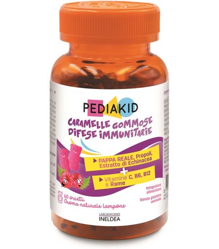 PEDIAKID - CARAMELLE GOMMOSE DIFESE IMMUNITARIE - Descrizione Integratore alimentare a base di pappa reale, estratto di echinacea, propoli con vitamine e rame. Estratto di echinacea, vitamina C, vitamina B6, vitamina B12 e rame contribuiscono al normale funzionamento del sistema immunitario. L'estr… ...