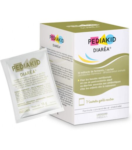 Diarea® del marchio Pediakid - per favorire la remissione della diarrea. La diarrea consiste nell’emissione di feci liquide ed è un disturbo comune. In caso di diarrea bisogna prestare particolare attenzione a neonati e bambini piccoli; per tale motivo Pediakid ha sviluppato una formula speciale destinata al trattamento alimentare nel caso di: gastroenterite (diarrea contagiosa) diarrea causata dall’assunzione di antibiotici. Una formula innovativa pensata per i bambini a partire dalla nascita! D iarea® in bustine è destinato all’assunzione per 7 giorni. Il contenuto della bustina va semplicemente mescolato al cibo o alle bevande del neonato o del bambino. Ogni bustina contiene 10 miliardi di colture batteriche provenienti da 2 ceppi di batteri lattici (Bifidobacterium animalis subsp lactis Lafti®B94 e Lactobacillus rhamnosus Rosell®-11) integrati da fibra di acacia. ...
