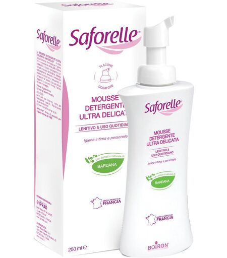 Saforelle - Descrizione Mousse detergente ultra delicata appositamente formulata per l'igiene intima e personale delle pelli irritate e indebolite. Questo detergente con estratto naturale di bardana, deterge delicatamente, lenendo immediatamente le irritazioni e riducendo le sensazioni di fastidio.… ...