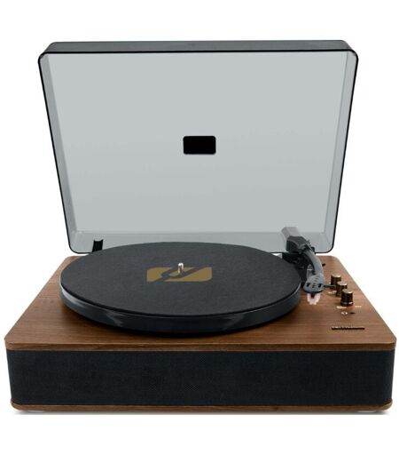 Giradischi Muse MT106BT con Bluetooth. Porta USB per lettura e codifica. Sistema giradischi stereo. Tipo: giradischi. 3 Velocità del giradischi: 33, 45 e 78 giri/min. Manuale o automatico: automatico. Sistema di trasmissione: cinghia. Preamplificatore integrato: sì. Varie: 2 altoparlanti integrati. Colore marrone. Comunicazione senza fili: Bluetooth. Bluetooth: sì. Sintonizzatore: no. Altro(i): adattatore per dischi 45 giri. Uscita USB: sì. Altro(i): uscita RCA, ingresso ausiliario (3,5 mm). Alimentazione: 100-240 V / 50/60 Hz. Accessori inclusi: adattatore CA, stilo sostitutivo, adattatore 45 giri/min. Larghezza (mm): 410. Altezza (mm): 130. Profondità (mm): 222. ...