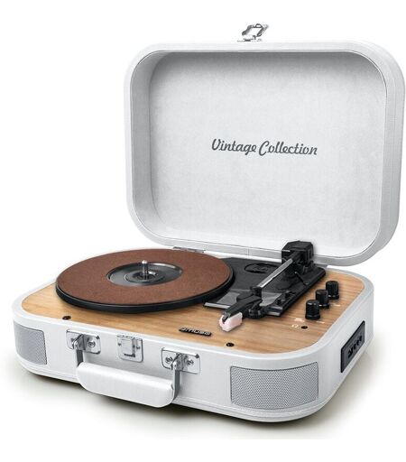 Tipo di prodotto: giradischi in vinile. Tipo: platino. Velocità del giradischi: 33, 45 e 78 giri. Colore bianco. Colore(i) secondario(i): Legno. Potenza in uscita: 2 x 5 W. Altro: 2 altoparlanti integrati. Comunicazione senza fili: Bluetooth. Bluetooth: sì. Sintonizzatore: no. Lettore MP3: sì. Conversione di vinili in file digitali: sì. Altro/i: streaming di musica da un altro dispositivo Bluetooth, interruttore di accensione/spegnimento automatico. Uscita USB: sì. Altro(i): ingresso ausiliario (3,5 mm), uscita RCA, jack per cuffie. Alimentazione: Rete 100-240 V, 50/60 Hz. Accessori inclusi: adattatore CA, stilo sostitutivo, adattatore 45 giri/min. Larghezza (mm): 360. Altezza (mm): 129. Profondità (mm): 290. Peso (kg): 2,3. ...