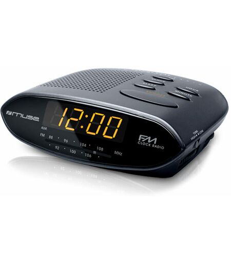 Radio analogica da tavolo MUSE M-10 CR rifinita in nero, 20 stazioni FM preimpostate, doppio sistema di allarme, funzione snooze, display LED bianco da 0,6 pollici, intensità del display regolabile, orologio 24 ore. ...