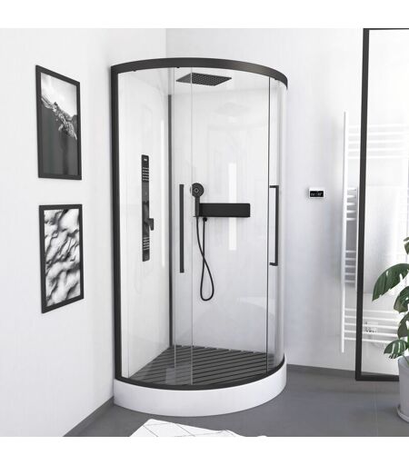 AURLANE Pedana in legno composito grigio per cabina semicircolare - Dimensioni 77 x 77 x 3.2 cm