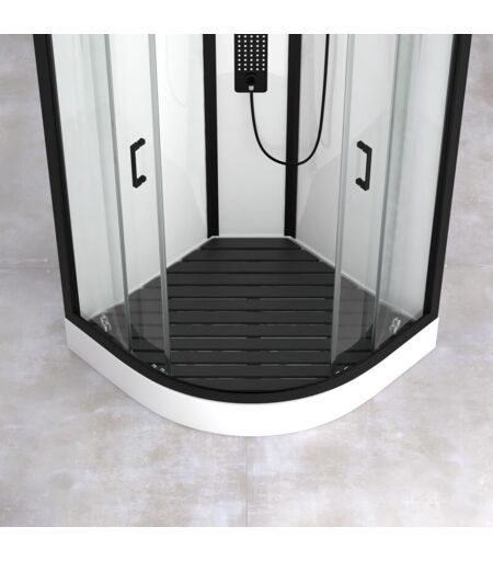 HOMEMAISON - Pedana in Legno Composito Grigio per Cabina a Quarto di Cerchio - 80,4 x 80,4 cm