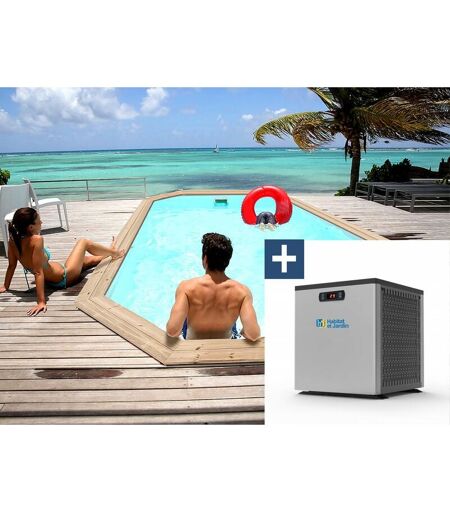 HABITAT ET JARDIN - Piscina in legno Cordoba - 3,48 x 2,15 x 1,18 m + mini pompa di calore 3,5kW - Metallo - Grigio