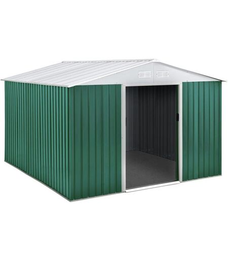 Capanno da giardino in metallo verde e bianco - Dimensioni fuori tutto: L 2,55 x l 2,77 x 2,02 m - Kit d'ancoraggio su cemento incluso La casetta da giardino perfetta PIÙ SPAZIO La casetta da giardino Rosas è la soluzione ideale per tutte le vostre esigenze di stoccaggio. Collocata nel vostro giardino, questa rimessa vi permette di riporre le vostre attrezzature esterne, il vostro tagliaerba, i vostri mobili da giardino, i vostri attrezzi da bricolage ma anche le biciclette dei vostri bambini o le vostre attrezzature da campeggio. ACCIAIO GALVANIZZATO Per un uso a lungo termine e nelle migliori condizioni, questa casetta da giardino ha una struttura rinforzata in acciaio galvanizzato. La galvanizzazione offre una protezione contro gli elementi in modo molto efficace. È resistente alla corrosione, ai raggi UV, all'abrasione, all'erosione, ecc. Questo rifugio è stato interamente progettato per offrirvi uno spazio di stoccaggio esterno affidabile ed efficiente. VENTILAZIONE OTTIMALE Per ...