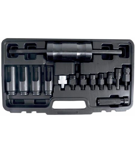 CASSETTA DI ESTRAZIONE DEGLI INIETTORI DIESEL Il design del peso inerziale consente di rimuovere gli iniettori in spazi ristretti. Il set comprende i seguenti strumenti - una mazza scorrevole, con asta e impugnatura, del peso di 4400 g - adattatore per giunto sferico - adattatori (filettatura interna) : M14 x M14 - M17 x M14 - M25 x M14 - M27 x M14 - adattatori (filettatura esterna) : M27 x M14 - M20 x M14 - bussole esagonali aperte per : 25 - 27 - 29 - 30 - bit esagonale 10 mm quadrato 1/2 Qualità professionale ...