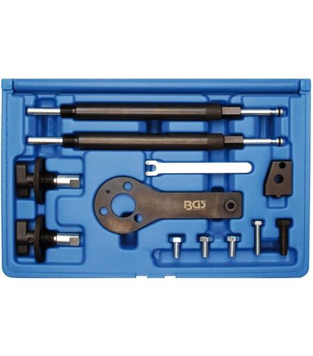 KIT DIALING FIAT ALFA ROMEO LANCIA 1.2 / 1.4 16V T-Jet Per la regolazione della fasatura del motore in caso di sostituzione della cinghia dentata, riparazione della testata, sostituzione della guarnizione della testata, ecc. Adatto per Alfa Romeo, Fiat e Lancia 1.2 16V / 1.4 16v / 1.4 T-Jet Codici motore, ad esempio 169A3000, 179B9000, 182B2000, 188A5000, 192B2000, 198A1000, 198A4000, 199A6000, 199A8000, 843A1000 Contenuto del kit : Regolatore dell'albero a gomiti (con viti M6x30 e 3 x M8x16), da utilizzare come OEM 2.000.004.500 Strumento di regolazione dell'albero a camme (1 coppia), da utilizzare come OEM 1.860.985.000 Strumento di regolazione dell'altezza del pistone, da utilizzare come OEM 1.860.992.000 Attrezzo di regolazione per il tenditore della cinghia dentata, da usare come OEM 1 860 987 000 Attrezzo di regolazione per pignoni dell'albero a camme (con vite M8x30), da utilizzare come OEM 2 000 015 800 ...