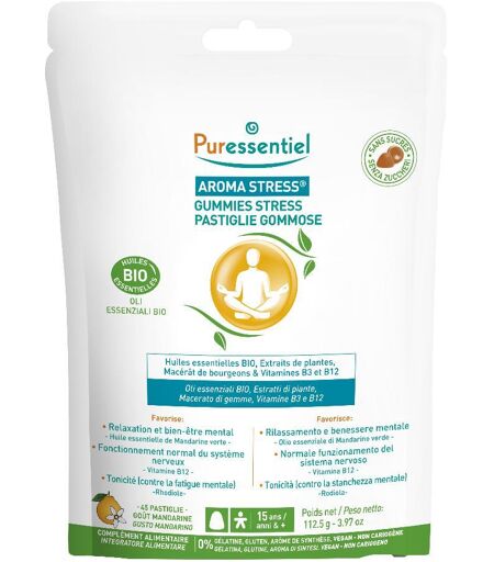 Puressentiel Italia Srl Puressentiel Pastiglie Gommose Aroma Stress, 45 Pastiglie, Vegan, Gusto Mandarino, Rilassamento, Benessere Mentale