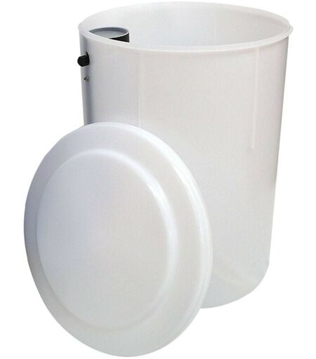 Serbatoio del sale da 100 litri Completo di coperchio, canna fumaria, capsula camino, galleggiante e ritegno aria, attacco uscita per tubo da 3/8" Serbatoio sale 100 litri Attacco completo da 3/8" per addolcitore bi-blocco o deferrizzatore ...