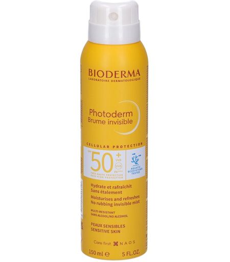 Bioderma Photoderm Solare Brume Invisible SPF50+ 150 mlA cosa serve Bioderma Photoderm Solare Brume Invisible SPF50+Protezione molto alta. Pelle sensibile. Idrata e rinfresca. Non si spalma. Senza alcool. Viso e corpo. Vaporizzare prima dell'esposizione. Rinnovare frequentemente. Bambini a part ...