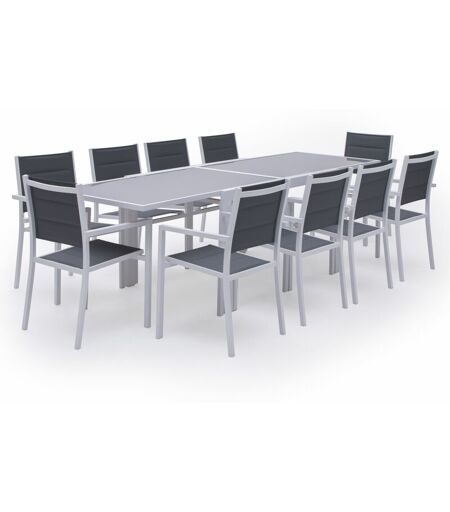 HAPPY GARDEN Lampedusa set di mobili da giardino allungabili in textilene grigio 10 posti - alluminio bianco