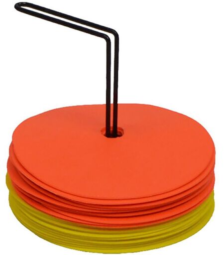 Set di 24 dischi segnacampo (12 gialli e 12 arancioni) antiscivolo, perfettamente adattabili agli allenamenti indoor o su campo sintetico.Robusto supporto in metallo studiato per facilitare la rimozione o il riposizionamento dei dischi.Ø15,5cm. ...