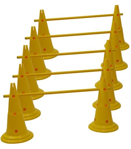 SPORTI FRANCE Coni da Allenamento con Barra: La Soluzione di Allenamento Versatile DefinitivaMigliora le tue sessioni di allenamento e sblocca le massime prestazioni atletiche con il set di coni da allenamento con barra SPORTI FRANCE. Progettato per allenatori, atleti, scuole e club che richiedono versatilità e durata, questo kit all-in-one è la pietra angolare di qualsiasi programma di condizionamento efficace. Vai oltre i semplici marcatori e crea un ambiente di allenamento dinamico e multifunzionale per una vasta gamma di sport, tra cui calcio, basket, atletica leggera, rugby e fitness generale.Versatilità Ineguagliabile per un Allenamento ProgressivoLa vera potenza di questo set risiede nella sua eccezionale adattabilità. Ciascuno dei dieci robusti coni da 50 cm presenta 12 fori posizionati strategicamente, offrendo un´incredibile gamma di regolazioni in altezza. Ciò ti consente di creare ostacoli di dimensioni personalizzate e ostacoli su misura per qualsiasi esercizio o livello di abilità. Inizia con ostacoli bassi per la velocità e il gioco di gambe agile, quindi alza progressivamente i pali per sviluppare potenza esplosiva, capacità di salto e forza pliometrica. Questo sistema di progressione integrato rende il set perfetto per allenare tutti, dai giovani principianti agli atleti d´élite, garantendo sfide e miglioramenti continui.Progetta Esercizi Dinamici con FacilitàTrasforma qualsiasi spazio in un campo di allenamento di livello professionale. Usa i coni e i pali per costruire un´infinita varietà di esercizi. Imposta intricati percorsi di slalom per migliorare l´agilità e il cambio di direzione, crea sequenze di ostacoli per la coordinazione e la tecnica della falcata o costruisci porte di passaggio per esercizi specifici per lo sport di squadra. L´altezza di 50 cm dei coni assicura che siano altamente visibili sul campo, fornendo chiari segnali visivi per gli atleti durante gli allenamenti ad alta intensità. La loro base ampia e stabile offre un´eccellente affidabilità su varie superfici, dai campi in erba alle palestre al coperto, riducendo al minimo le interruzioni e massimizzando il tempo di allenamento.Questo kit completo fornisce tutto il necessario per iniziare immediatamente. È l´investimento ideale per qualsiasi squadra o individuo che desideri aggiungere una nuova dimensione di sfida, precisione ed efficacia al proprio regime di allenamento.Contenuto del Kit Completo:1 set di 10 coni da 50 cm con 12 fori + 5 pali da 1 m.Colori coordinati ...