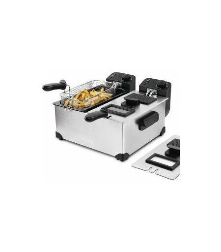 Preparata delle deliziose patatine fritte fatte in casa con la friggitrice DFX600 di H.Koenig! Dotata di una potenza di 3600 watts, questa friggitrice dispone di una doppia vaschetta in acciaio inox, perfetta per realizzare vere e proprie patatine fritte come i professionisti.Con una capacità totale di 6L, ogni vaschetta possiede un termostato indipendente che permette di regolare la temperatura fino a 190°C. In questo modo avrete la possibilità di dare una doppia cottura alle patatine fritte, o cucinare contemporaneamente due cibi diversi per risparmiare tempo.Le vaschette sono dotate di filtri per limitare gli odori e il fumo, ma anche di oblò trasparenti per monitorare le vostre cotture in qualsiasi momento. Facile da pulire, la friggitrice DFX600 è completamente smontabile e le parti rimovibili sono compatibili con la lavastoviglie. La protezione contro il surriscaldamento e le maniglie termoisolate assicurano un utilizzo sicuro della friggitrice. Scegliete la DFX600 per i vostri ...
