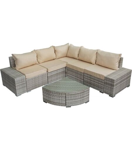 Divano angolare da giardino "Milo" - 5 posti - Dimensioni divano: 238/238 x 79 x 71 cm - Dimensioni tavolo: 70 x 70 x 35 cm - Resina intrecciata - Grigio Set da giardino in resina e vimini - "Milo" - 5 posti - Grigio Trasforma il tuo spazio esterno in una vera oasi di pace con il set da giardino "Milo". Questo elegante e moderno arredo, composto da un ampio divano 238 x 238 cm e da un elegante tavolo 70 x 70 cm, è ideale per creare un angolo accogliente e raffinato in giardino, patio o balcone. Con le sue linee pulite e il colore grigio di tendenza, il set da giardino "Milo" si integra perfettamente in qualsiasi arredamento, donando un tocco di raffinatezza al tuo spazio esterno. Realizzato in resina e vimini di alta qualità, coniuga eleganza e resistenza. Pratico e di facile manutenzione, il set da giardino "Milo" trasforma il tuo giardino in uno spazio davvero chic e piacevole. Non perdere l'occasione di creare uno spazio esterno dove convivialità e raffinatezza si incontrano. ...