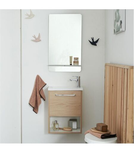 Punti di forza: Mobile lavamani a parete con vasca in resina sintetica/Sistema di cerniere a chiusura ammortizzata/Maniglia integrata e istruzioni dettagliate/Anta e vasca reversibili/Specchio con ripiano incluso Mobile lavamani NIKA: una soluzione compatta ed elegante Il mobile lavamani NIKA è progettato per ottimizzare gli spazi ridotti, aggiungendo un tocco di modernità. Il suo design a parete libera spazio sul pavimento, facilitando la manutenzione e dando un senso di spazio. Con le sue dimensioni ottimizzate (L40 x A53 x P21 cm), offre un contenimento discreto pur rimanendo funzionale. Disponibile in tre eleganti finiture (rovere e bianco, rovere e nero, nero e rovere), si adatta a qualsiasi stile di arredamento. La sua vasca in resina sintetica, resistente e di facile manutenzione, garantisce un utilizzo quotidiano senza vincoli. Dotato di anta reversibile, meccanismo di chiusura ammortizzata e maniglia in metallo cromato o nero, questo mobile unisce praticità ed estetica. ...