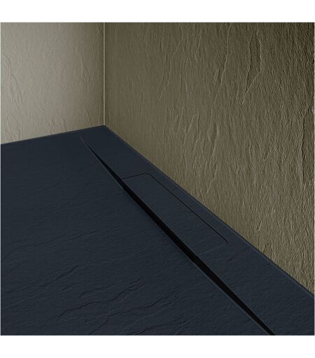 MOB-IN Receveur de douche aspect pierre extra-plat gris anthracite - Bonde incluse