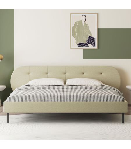 Letto imbottito 140x190cm beige con testiera e rete a doghe Crea un angolo notte elegante e funzionale con questo letto matrimoniale dal design delicato. Il rivestimento in tessuto di poliestere disponibile in tre colori: beige, grigio scuro o verde, si adatta facilmente a tutti gli stili d'interni, dai più sobri ai più decisi. La testiera bassa con angoli arrotondati e delicatamente imbottita struttura lo spazio con eleganza, offrendoti nel contempo un supporto confortevole. La rete a doghe in legno integrata assicura un buon supporto al materasso e favorisce un'ottima aerazione, notte dopo notte. Pensato per la vita di tutti i giorni, questo letto nasconde anche un dettaglio intelligente: tasche discrete sui lati per inserire telefono o lettura serale. Montato su piedi in metallo nero, unisce leggerezza visiva e stabilità. Un letto dall'estetica delicata e attuale, pensato per coniugare comfort, sobrietà e piccole attenzioni quotidiane. Caratteristiche tecniche Colore: Beige Design: ...