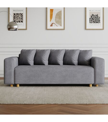CONCEPT-USINE - Divano letto 3 posti in velluto a coste grigio kolding