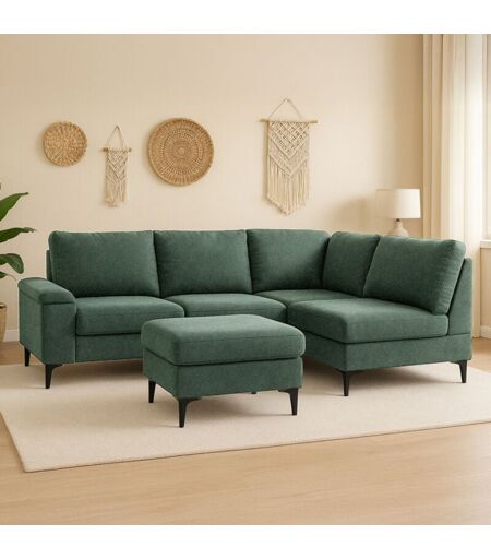 CONCEPT-USINE - Divano angolare 4/5 posti in tessuto ciniglia verde con pouf colchester