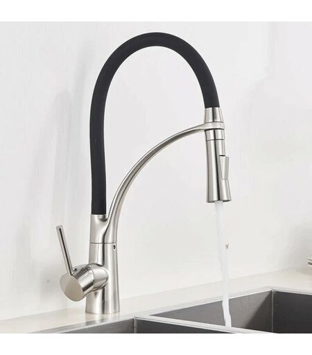 ROSMMEL Rubinetto da cucina, miscelatore restibile Design moderno e girevole a 360° nichel spazzolato