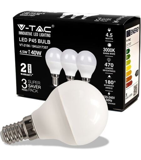 V-Tac Kit 3pcs/pack Lampadina Mini Globo Led Smd P45 4,5w E14 Bianco Caldo 2700k 105lm/w Vt-2156 - Sku 217357