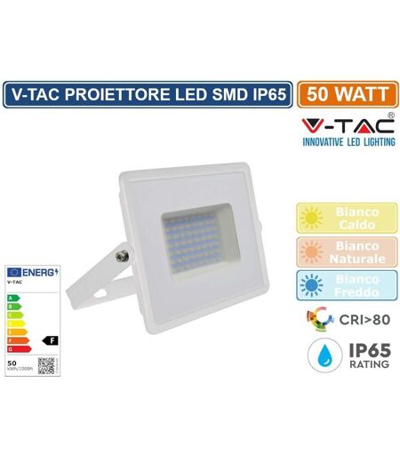 V-TAC VT-4051 e-series faro led smd 50W ultra sottile da esterno colore bianco - sku 215961 / 215962 / 215963 - Colore Luce: Bianco Freddo -