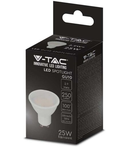 V-Tac Vt-2333 Lampadina Spot Led 2.9w Gu10 Faretto 100° Copertura Satinata Luce Bianco Naturale 4000k - 2988