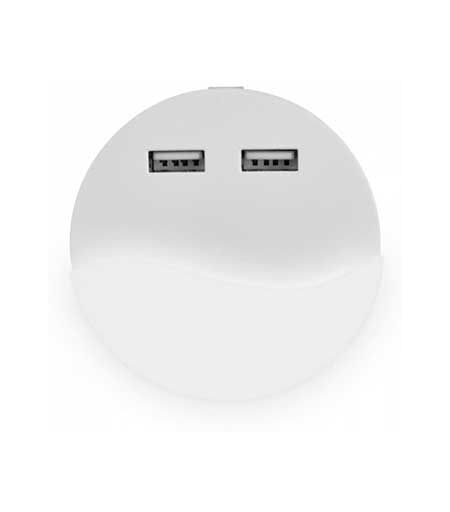 V-Tac Pro Vt-84 Punto Luce 0,45w Led Night Light Segnapasso Rotondo Chip Samsung Con Crepuscolare 3000k + Porte Usb Ip20 - Sku 505