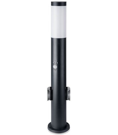 V-Tac Paletto Led Da Giardino 60cm Piantana Portalampada E27 + 2 Prese Schuko E Sensore Di Movimento Nero Ip44