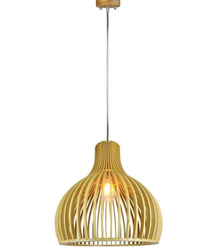 V-TAC WOODEN PENDANT LIGHT WITH CHROME DECORATIVE CAP + CANOPY + LAMPSHADE CONE CAVE D450*H450MM
