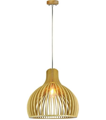 V-TAC Wooden Pendant Light With Chrome Decorative Cap + Canopy + Lampshade Round D350*450MM