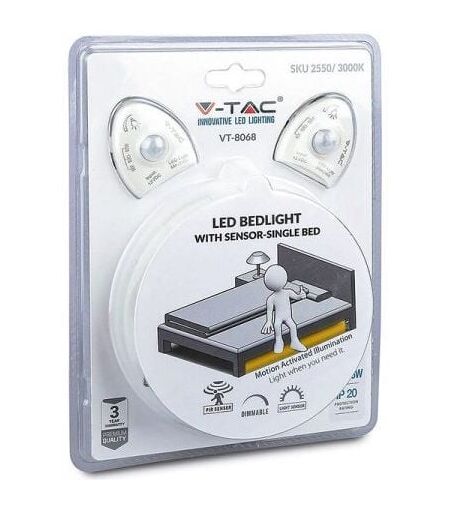 Marca V-TAC SKU BL2550C Dimmerabile SI Voltaggio 12V Potenza 2.8W Luminosità Circa 260 Lumen Ogni Striscia CRI RA>80 Angolo Luce 120 Gradi Colore Bianco Caldo 3000K Impermeabilità IP20 Temperatura Emesso < 50°C Misura(mm) 120mmx10mmx1.52mm Durata 20000 ore Omologazione SI, CE e RoHS Nota Bene Modello Singolo Con 1 Alimentatore + 2 Strisce led + 2 Sensori Movimento ...