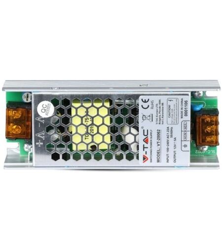 V-TAC Alimentatore led Slim Power Supply - 60W 12V 5A Metal