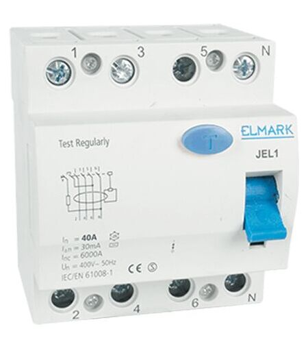 ELMARK Interruttore Differenziale 4 Poli JEL1 16A 300mA per Protezione da Corrente di Dispersione in Impianti Trifase