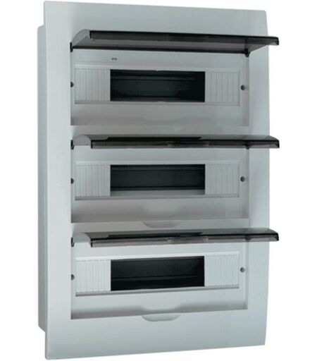 SCATOLA DA APPARTAMENTO MONTAGGIO A VISTA A 36 VIE CARATTERISTICHE TECNICHE :Modello=PDB1 :Numero di moduli=36 :Numero di righe=3 :Grado di protezione=IP40 :Tipo del materiale=Plastica :Dimensione complessiva (mm)=L:271/W:462/H:66 :Marca=ELMARK ...