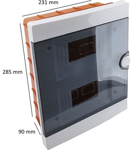 Cassetta di distribuzione elettrica in plastica ABS con protezione ambientale IP40. Caratteristiche Moduli: 2x8 Tipologia montaggio: incasso Materiale di composizione: plastica ABS Tasso di resistenza al calore: 360° C Impermeabilità: IP40 Numero di file: 2 Colore del prodotto: bianco Accessori di montaggio inclusi: viti e guida DIN ( guida metallica su cui vengono montati i componenti elettrici) Dimensioni Altezza: 285 mm Larghezza: 231 mm Spessore: 90 mm ...