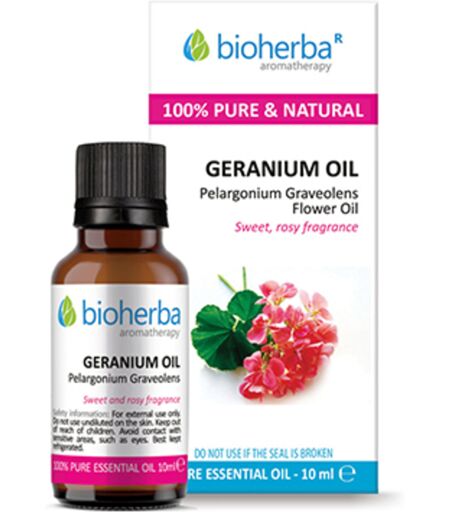 Olio essenziale di geranio – amato come pianta da balcone, ma ha numerose proprietà benefiche! Il geranio ( Pelargonium Graveolens) è un tipo di pelargonio e una delle piante da balcone più popolari. Proviene dal Sud Africa ed era stato utilizzato già nell'antico Egitto, sia come profumo che come parte della tradizione erboristica. Gli oli essenziali sono essenze profumate volatili che le piante immagazzinano nei loro petali, foglie, frutti, corteccia e radici - l'olio essenziale di geranio si ottiene distillando i suoi fiori. Usando gli oli essenziali nei vaporizzatori e prodotti simili, possiamo profumare la nostra casa, possono essere utilizzati anche per bagni, massaggi, essere applicati sulle pietre in sauna e spesso sono anche un ingrediente di prodotti cosmetici. Usalo nel vaporizzatore e goditi il piacevole profumo floreale! I vantaggi dell'olio essenziale di geranio del marchio Bioherba: olio essenziale al 100%, ottenuto con la distillazione di fiori di geranio, veramente versatile, ingrediente richiesto per prodotti cosmetici naturali – soprattutto per la cura di pelli mature e acneiche, entusiasma con il suo profumo floreale, un po' agrumato e assomiglia alla rosa, può essere usato come profuma ambiente in un vaporizzatore - migliora l'umore e rilassa, si abbina bene a oli essenziali di basilico, carota, limone, cedro, lavanda, legno di sandalo, bergamotto, patchouli..., si può utilizzare per l'aromaterapia, in sauna, per massaggi ecc. ...