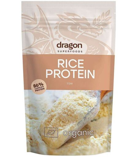 BIO proteine di riso – contengono ben 86% di proteine! Le BIO proteine di riso del marchio Dragon Superfoods sono in polvere e vengono ottenute dal riso mediante un processo a bassa temperatura privo di sostanze chimiche. Hanno un alto contenuto proteico di ben l'86%. Contengono anche tutti i 9 amminoacidi essenziali, i quali svolgono un ruolo importante nella costruzione delle proteine. Poiché il nostro corpo non può sintetizzarli da sé, quindi dobbiamo assumerli attraverso il cibo. Proteine vegane arricchite con aminoacidi – contengono i 9 aminoacidi essenziali! Le proteine di riso sono di origine vegetale, quindi sono un ottimo sostituto delle proteine del siero di latte - ne saranno entusiasti i vegani, i vegetariani e chiunque eviti i latticini. Le proteine sono crude e puoi usarle così come sono: da aggiungere a frullati, succhi, porridge, yogurt e simili, inoltre funzionano benissimo anche nei dessert. E per finire, sono confezionati in confezioni riciclabili, così ti prendi anche cura del tuo impatto ambientale. ...