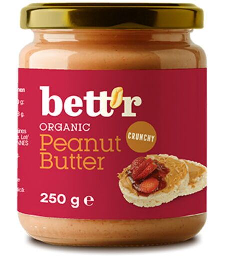 Crema di arachidi BIO – prodotta con il 99,4% di arachidi tostate e pelate. La crema di arachidi BIO della linea Bett’r del marchio Smart Organic è una crema spalmabile gustosa e naturale, perfetta da gustare in qualsiasi momento. È realizzata con il 99,4% di arachidi tostate a cui è stato aggiunto un pizzico di sale, senza alcun altro additivo. Le sue qualità nutrizionali sono altrettanto notevoli: contiene molti grassi insaturi tipici della frutta secca, fibre e proteine, essenziali per una digestione equilibrata. Durante la produzione si è pensato anche all’aspetto della sostenibilità: è confezionata in vetro – senza plastica – che protegge meglio il prodotto dagli agenti esterni. Perfetta in combinazione con la marmellata – un ripieno che ha fatto impazzire l’America! La crema di arachidi ha una consistenza cremosa, arricchita da piccoli pezzi di arachidi per una maggiore croccantezza. È comunque abbastanza spalmabile da poterla distribuire su pane, pancake, waffle, e per un tocco speciale puoi aggiungere anche la marmellata – la combinazione americana così buona da aver ispirato persino una canzone divertente. Si presta benissimo anche in pasticceria e in altre preparazioni dolci, dove regala un delizioso gusto di frutta secca. Ottima anche in combinazione con frutta, soprattutto banana, mela e frutti di bosco. Puoi gustarla anche a cucchiaiate – ma attenzione, c’è il serio rischio di finire l’intero barattolo! Con pezzi di arachidi per maggiore croccantezza – ma ancora abbastanza cremosa! Vantaggi della crema di arachidi BIO: realizzata con il 99,4% di arachidi biologiche tostate e pelate, consistenza liscia con pezzettini di arachidi , confezionata in vetro , senza additivi, gustosa e nutriente - ricca di proteine, fibre e grassi salutari, uso versatile - come crema spalmabile o aggiunta a piatti e dolci. ...