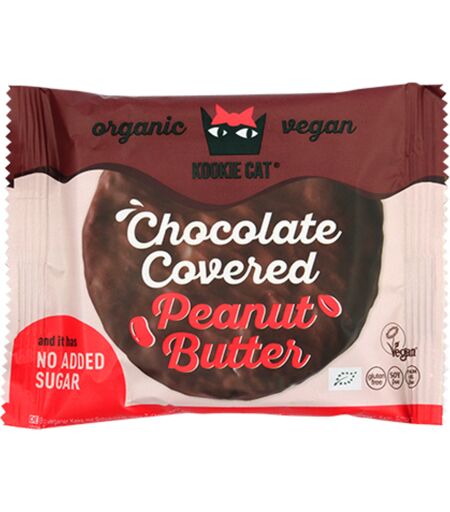 Biscotto BIO Kookie Cat – cioccolato e crema di arachidi – ricoperto con cioccolato, con eritritolo! I biscotti Kookie Cat sono snack unici e gustosi che entusiasmano in ogni aspetto - non si tratta di biscotti classici ai quali siamo abituati. Un singolo biscotto infatti contiene ingredienti nutrienti di qualità da produzione biologica, che differiscono a seconda del sapore del biscotto. Ciò che accomuna tutti i biscotti Kookie Cat è che sono vegani e non contengono glutine, soia e olio di palma. Proprio per questo motivo è uno spuntino eccellente che soddisferà la tua voglia di dolce e ti darà energia per nuove imprese. Vegani, organici, senza soia e glutine – un ottimo snack nutriente per tutti gli amanti del cioccolato! Il sapore di cioccolato e crema di arachidi delizierà gli amanti delle arachidi e del cioccolato, poiché è a base di arachidi, crema di arachidi, proteine di riso e di chia, farina di cocco, datteri, semi di lino e olio di cocco, il tutto ricoperto di squisito cioccolato. Inoltre, questo biscotto contiene solo zuccheri naturali e il dolcificante eritritolo, che è un sostituto dello zucchero normale. Disponibile in una pratica confezione da 50 g che sta in qualsiasi tasca - per essere sempre con te nelle tue avventure o quando hai solo voglia di qualcosa di dolce. ...