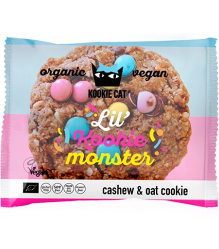 BIO biscotto Kookie Cat – vegano, con caramelle colorate e vaniglia! I biscotti Kookie Cat sono snack unici e gustosi che entusiasmano in ogni aspetto - non si tratta di biscotti classici ai quali siamo abituati. Un singolo biscotto infatti contiene ingredienti nutrienti di qualità da produzione biologica, che differiscono a seconda del sapore del biscotto. Ciò che accomuna tutti i biscotti Kookie Cat è che sono vegani e non contengono glutine, soia e olio di palma. Proprio per questo motivo sono uno spuntino eccellente che soddisferà la tua voglia di dolce e ti darà energia per nuove imprese. Inoltre, quando assapori questi deliziosi biscotti, allo stesso tempo ti prendi cura della tua impronta ambientale, perché grazie al materiale utilizzato, il loro imballaggio può essere riciclato al 100%. Contiene ingredienti di qualità da produzione biologica – è senza glutine, soia e olio di palma! Il sapore di vaniglia & caramelle colorate delizierà tutti, ma soprattutto i più piccoli che non sapranno resistere alle divertenti carammele. Le caramelle sono di cioccolato fondente, colorate con coloranti naturali - da carote, zafferano, ribes nero, spirulina, ravanello e mela. All'interno del biscotto ci sono altri straordinari ingredienti come fiocchi d'avena senza glutine, anacardi, sciroppo di cocco e vaniglia bourbon in polvere. Disponibile in una pratica confezione da 50 g che sta in qualsiasi tasca - per essere sempre con te nelle tue avventure o quando hai solo voglia di qualcosa di dolce. ...