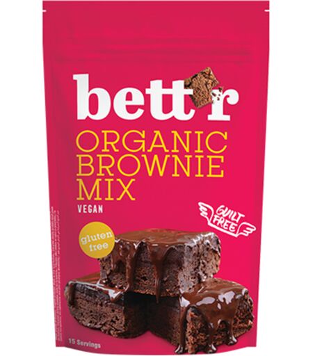BIO mix per brownies senza glutine – adatto anche per vegani! Il BIO mix per la preparazione facile di brownies senza glutine della linea Bett'r del marchio Smart Organic delizierà tutti gli amanti del cioccolato e di dolci. Nemmeno gli appassionati dell'alimentazione vegetale rimarranno indifferenti, in quanto il mix è anche vegano e contiene ingredienti di produzione biologica. Quindi non troverai additivi sconosciuti nel mix - solo farina di avena, di lino e di grano saraceno, zucchero di cocco, cacao in polvere, cremor tartaro e lievito! Per finire, il mix è confezionato in un imballaggio riciclabile, quindi ti prendi cura anche del tuo impatto ambientale. Preparazione facile e veloce in soli 3 passi – un'ottima soluzione per ospiti inaspettati! Grazie alla sua preparazione semplice e veloce, ti salverà in caso di visite senza preavviso - basta aggiungere olio e latte o una bevanda vegetale al mix, impastare il tutto e stendere sulla teglia e infornare. Per coloro che vogliono arricchire un po' i loro dessert, si può aggiungere all'impasto vari frutti, frutta a guscio, gocce di cioccolato ecc. e, alla fine, ricoprire i brownies cotti con cioccolato sciolto: le possibilità sono infinite! ...