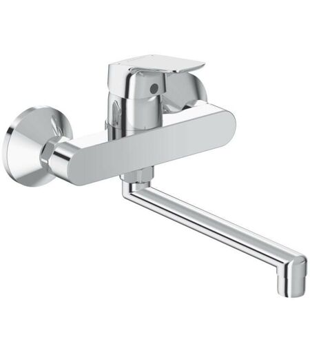 Miscelatore monocomando a parete per lavello con bocca d’erogazione orientabile. cartuccia 40mm con sistema EKO. Finitura: Cromato ...