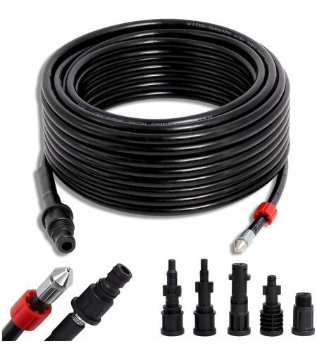 FREOSEN Tubo per idropulitrice da 20 m, 5 adattatori, 180 bar, 60 °c, set pulizia tubo per idropulitrice Kärcher Lavor, Interpump, Bosch, tubo disostruente