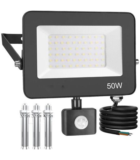BLEOSAN Faretto led da esterno con sensore di movimento 50W, 5000LM Faretto led da esterno Impermeabile IP66 6500K Bianco freddo per cortile, garage, patio
