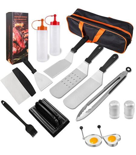 FREOSEN 15 pezzi di utensili per griglia in acciaio inox, spatola per barbecue, accessorio per griglia professionale per barbecue, spatola per griglia