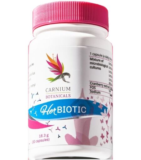 CARNIUM BOTANICALS HerBIOTIC - Descrizione Integratore alimentare. Complesso di colture microbiche con FOS in capsule. Ingredienti Miscela di colture microbiche (Lactobacillus plantarum, Lactobacillus fermentum, Lactobacillus acidophilus, Lactobacillus reuteri, Lactobacillus rhamnosus, Bifidobacter… ...