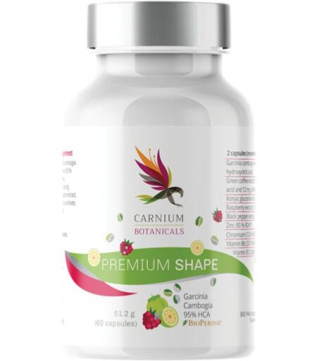 CARNIUM BOTANICALS PREMIUM SHAPE - Descrizione Integratore alimentare. Ingredienti Contenuto di una capsula (estratto di Garcinia cambogia (95% HCA), estratto di caffè verde (50% acido clorogenico), glucomannano di konjac in polvere, estratto di lampone (5% di chetoni), magnesio stearato naturale v… ...